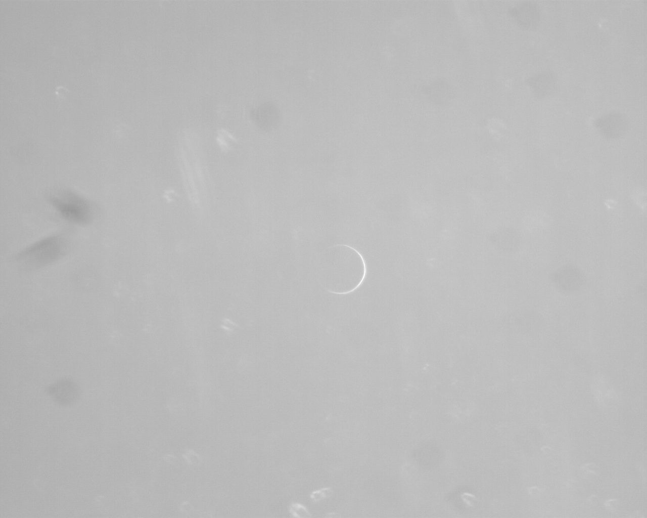 Daniel Crussaire [Dept. LESIA, Observatoire de Paris-Meudon] 102mm Takahashi fluorite refractor + red broadband filter PixeLINK CMOS camera; 0.025 sec exposure [Raw image - white patches are dust particles swep away by the wind in the air] June 6, 2004, 14:09:05 UT Meudon, Paris, France |