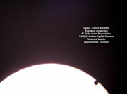 Ovidiu Tercu Carl Zeiss refractor; d=63mm; f=840mm Projection on solar screen Canon Powershot G1 More images at this site June 8, 2004 Galati, Romania | Venus Near the Border [2048 x 1536 pix - 241k]