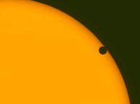 Giancarlo Ubaldo Nappi Newtonian 180 mm f /7 + BAADER filter + photografic green filter n. 58. - Mintron camera, shutter 1/250s. Images are the result from the sum of 25 frames June 8, 2004 Belo Horizonte, Minas Gerais, Brazil | Venus Transit 10h30m UT [768 x 576 pix - 36k]