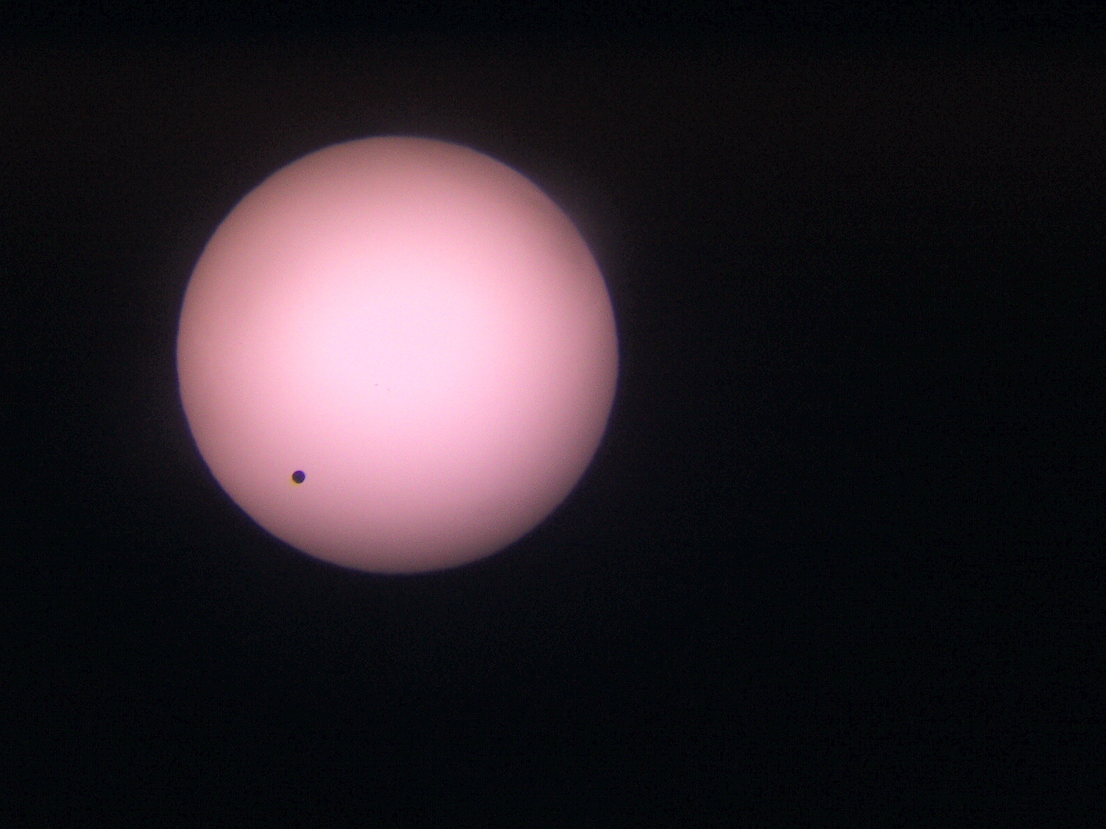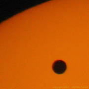 Fraser, Michael and Alex Farrell 30mm f/23 refractor (35-year old optics) Handheld digital camera Projected image [About 20 min after Second Contact.] June 8, 2004 Penwortham, Australia | Colours of Venus [400 x 400 pix - 30k]
