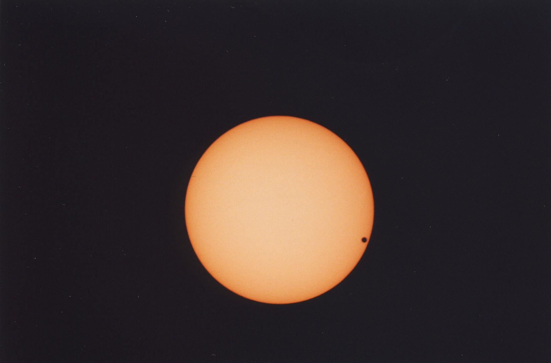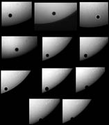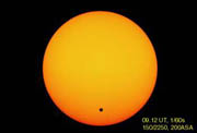 Astronomical Observatory Sliven 150/2250mm Cassegrain telescope SFS3 filter Praktika L2 camera June 8, 2004, 09:12 UT Sliven, Bulgaria [See images of the event here.] | Venus Transit (Sequence) [350 x 237 - 7k]