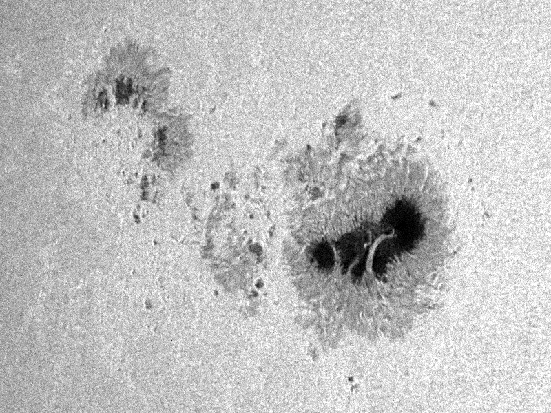 Ralph Vandebergh 6-inch refractor 40mm thermo-stable H-alpha filter Sony TRV740E HI-8 [Composite of about 70 frames] July 19, 2004, 09:15:32 UT The Netherlands |