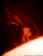 Ralph Vandebergh 6-inch refractor Sony TRV740E HI-8 [Composite of 66 frames in good seeing] July 19, 2004, 08:44:14 UT The Netherlands | Large Eruptive Prominence [539 x 700 - 56k]