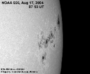 Hans-Göran Lindberg Newtonian telescope 120/2602mm Mintron MS-168EP; no filter August 17, 2004, 09:12 UT Kärrbo Observatory Skultuna, Sweden More images at this site | Solar Active Region AR 0656 [Animated GIF - 598 x 492 pix - 407k]