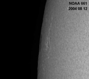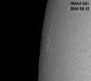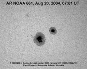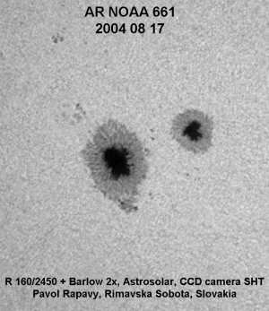 Pavel Rapavy 160/2450mm refractor + 2x Barlow CCD camera SHT August 17, 2004 Rimavska Sobota, Slovakia | Solar Active Region AR 0661 [800 x 640 pix - 226k]