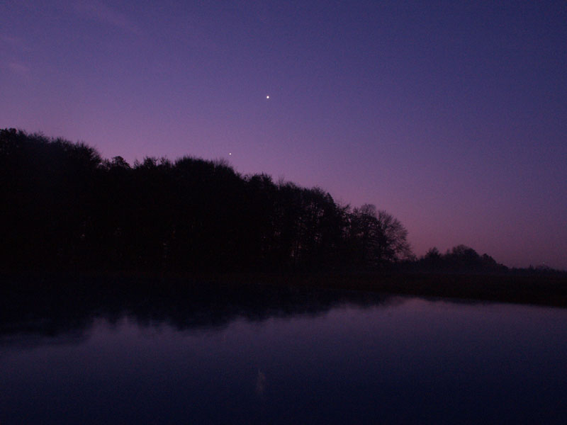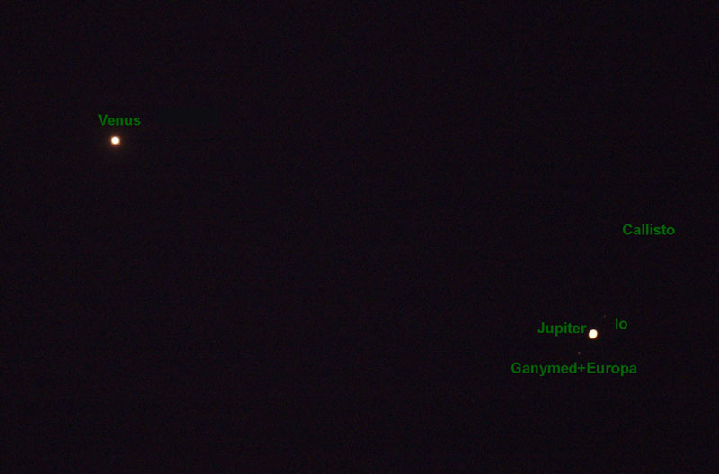 | Conjunction of Venus and Jupiter [800 x 600 pix - 50k] | Conjunction of Venus and Jupiter (Close-Up) [800 x 528 pix - 46k] |