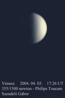 | Venus in early April [227 x 340 pix - 29k] | Venus' Slim Crescent [1033 x 749 pix - 71k] |