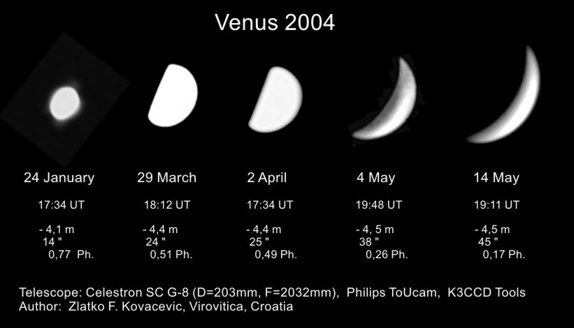 | Daytime Venus [640 x 480 pix - 25k] | Phases of Venus [821 x 470 pix - 110k] |