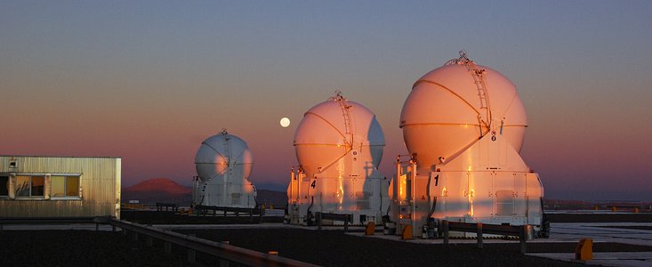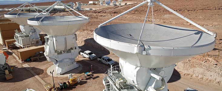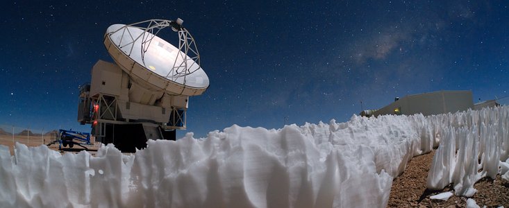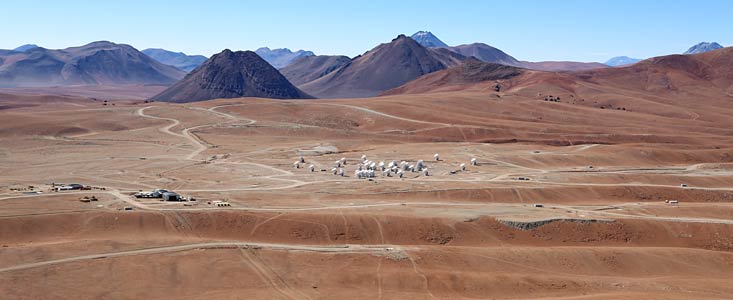 Здесь, на плато Чахнантор, на высоте 5000 м, воздух так разрежен и сух, что, кажется, им невозможно наполнить легкие. Благодаря этим экстремальным условиям миллиметровое и субмиллиметровое излучение, приходящее из космоса, может проходить сквозь то, что осталось здесь от земной атмосферы, и может быть зарегистрировано на поверхности Земли телескопами соответствующей чувствительности, такими, как ALMA и APEX.