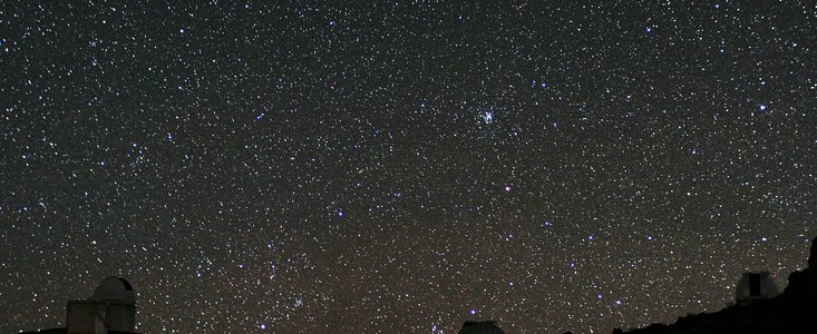А слабая светящаяся трасса высоко в небе на этой 20-секундной экспозиции - это след не метеора, а космического телескопа CoRoT (Convection Rotation and planetary Transits). CoRoT ищет планеты методом покрытий (транзитов), регистрируя ослабление блеска звезды в результате затмения ее планетой. Расположение космического телескопа вне атмосферы Земли повышает точность наблюдений, так как исчезает мерцание звезд. Существование потенциальных планет, найденных с помощью метода покрытий, подтверждается с помощью дополнительных методов, таких, как метод поиска экзопланет по радиальным скоростям. В ту самую ночь, когда была сделана эта фотография, HARPS следил за кандидатами в экзопланеты, обнаруженными CoRoT!