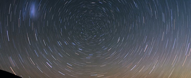 Чтобы понять, как построено это изображение, представьте, что его левый край соединен с правым и вы находитесь посредине этого кольца, а верхняя кромка стянута в одну точку над вашей головой – тогда вы увидите, что фото охватывает весь купол неба.
