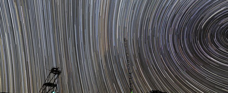 Хотя это изображение на первый взгляд похоже на произведение современного абстрактного искусства, на самом деле это результат длительной экспозиции ночного неба над плато Чахнантор в Северном Чили. Так как Земля вращается, звезды Млечного Пути над пустыней оставляют на кадре разноцветные треки, а высокотехнологичный телескоп на переднем плане кажется сказочной картинкой.