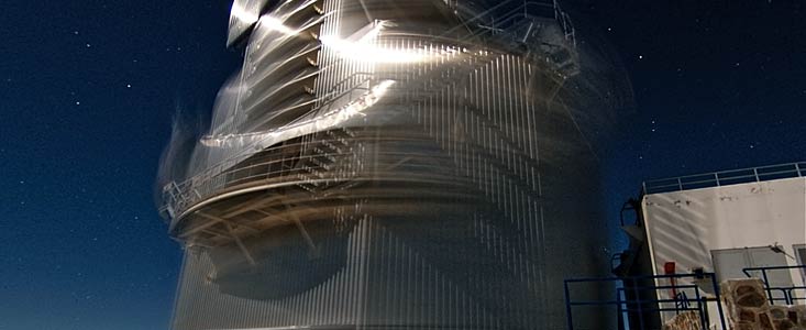 Высокоточный спектрограф для измерения лучевых скоростей (High Accuracy Radial velocity Planetary Search - HARPS), главный искатель экзопланет в мире, установлен на 3,6-м телескопе ESO. Открытый купол этого телескопа можно видеть в левой части изображения, за призматическим павильоном NTT (New Technology Telescope). HARPS находит экзопланеты путем регистрации небольших изменений в движении звезды, когда она слегка колеблется за счет гравитационного притяжения обращающейся вокруг нее планетой. Такой метод поиска экзопланет называется методом лучевых скоростей.