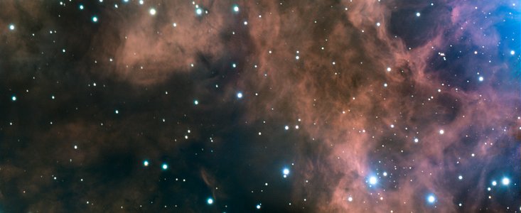 Самое заметное из них – Туманность Киля (Carina Nebula), сияющая красноватым светом в центре снимка. Туманность лежит в созвездии Киля (Carina), на расстоянии около 7500 световых лет от Солнца. Это облако светящегося газа и пыли – самая яркая туманность на небе. В ней содержатся некоторые самые яркие и массивные звезды Млечного Пути, такие, например, как Эта Киля (Eta Carinae). Туманность Киля представляет собой идеальную «небесную лабораторию» для астрономов, которые хотят открыть тайну бурных процессов рождения и смерти массивных звезд. Еще несколько недавно сделанных в ESO прекрасных фото Туманности Киля смотрите в eso1208, eso1145 и eso1031.