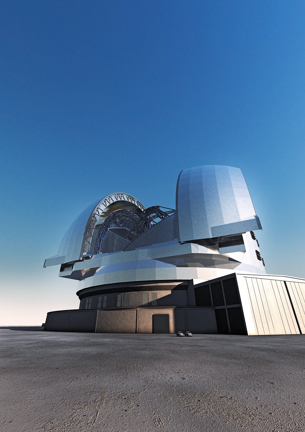 Artist's impression of the European Extremely Large Telescope (E-ELT). This revolutionary new ground-based telescope will have a 40-metre-class main mirror and will be the largest optical/near-infrared telescope in the world: “the world’s biggest eye on the sky”.