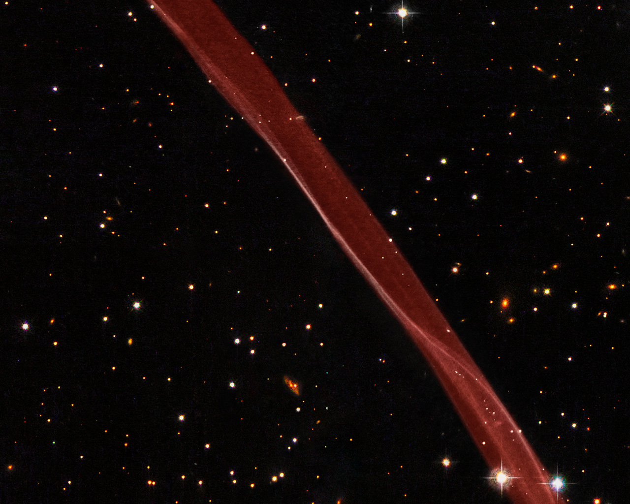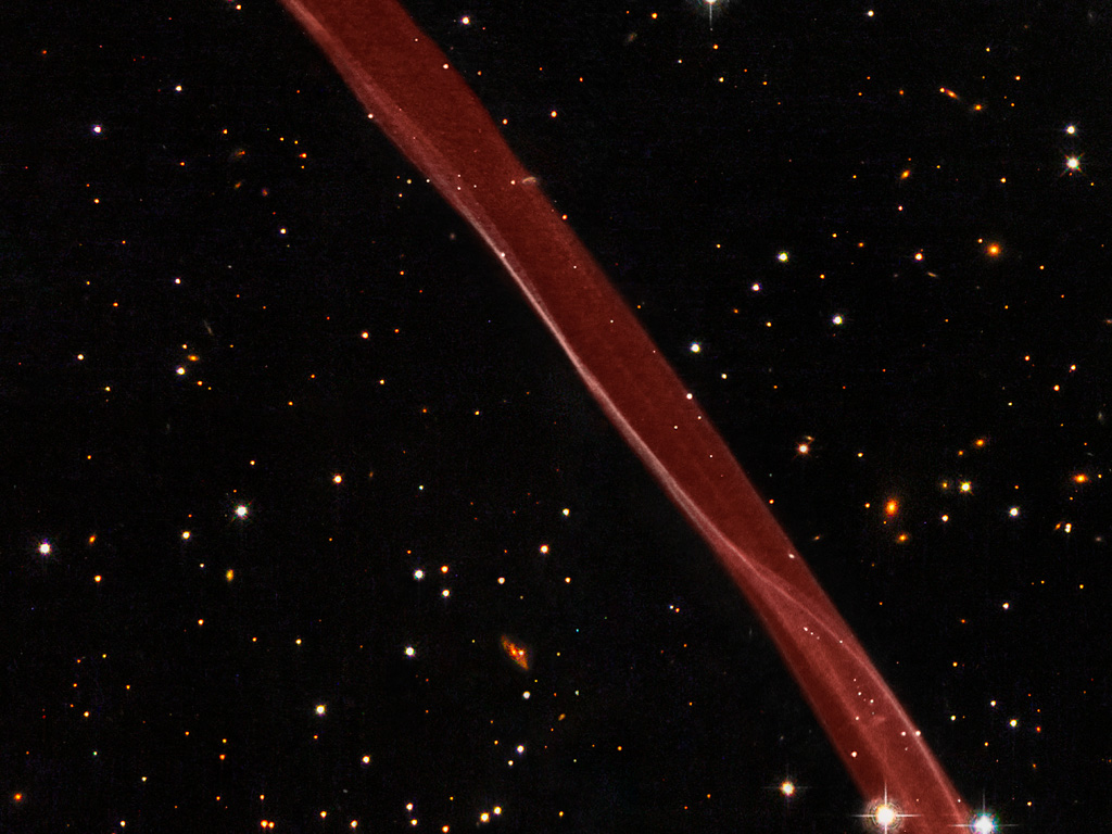En del av supernovaresten SN 1006 fotograferad av NASA/ESA:s Hubbleteleskop