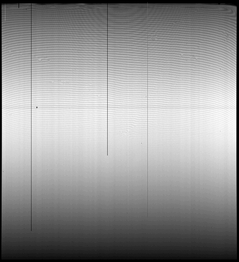 As an example the following image is given, which shows a spectroscopic Dome Flat of 40,000 ADU peak counts with Grism #5, Slit 1.0", normal readout and 2x2 binning. Click on the image to get a larger version: