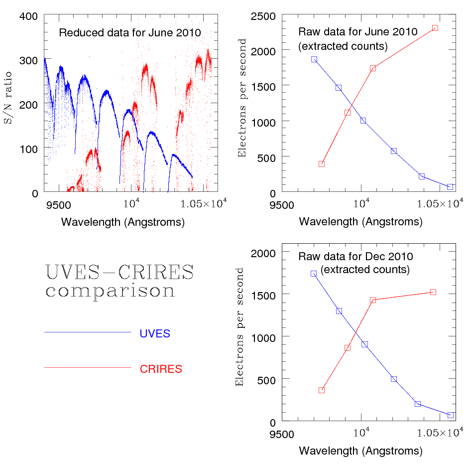 - Nov 22nd 2012: Remember that the CRIRES pipeline has recently be updated with improvements to wavelength calibration amongst other enhancements. In common with other Paranal instruments, visiting astronomers are no longer provided with DVDs at the end of their run and should download their data using the archive and using the "calSelector" option to obtain calibrations closest in time to their observations.