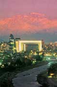 About Santiago: South of the Aconcagua begins the fertile heartland of the central valley which contains the city of Santiago, and a third of the country´s population (5.1 million inhabitants). This area enjoys a delightful Mediterranean climate with maximum temperatures averaging 28°C in January (summer) to 10°C July (winter). A contrasting city to say the least, old colonial buildings downtown, street vendors, and glowing skyscrapers dominate the landscape.