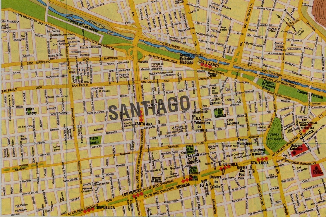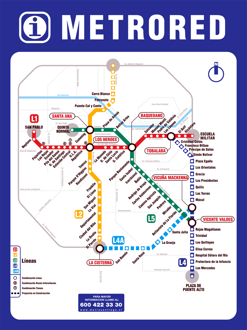 - To travel using the subway, check the stations at the Metro Web (planos de entorno). Línea 1 is the one you shall use to visit Santiago downtown.