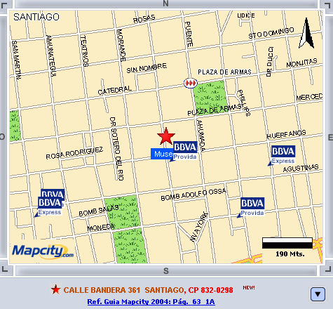 Museo de Santiago / Casa Colorada: The Casa Colorada is half a block from the Plaza de Armas, an antique structure made of stone whose color gives it its name -- "The Red House." It is widely regarded as the best-preserved colonial structure in Santiago, built between 1769 and 1779 as a residence for the first president of Chile, Mateo de Toro y Zambrano. Today, the Casa Colorada operates as the Santiago Museum, depicting the urban history of the city until the 19th century. A visitor center with information about Santiago is also located in the Casa Colorada. Metro: Plaza de Armas station (Línea 5).