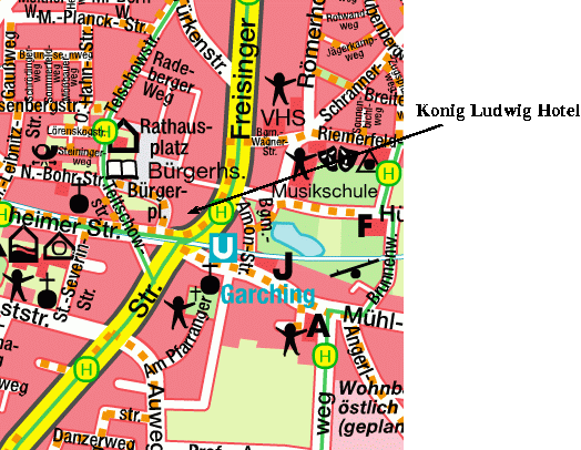 The Hotel is located in the center of Garching (Buergerplatz 3)