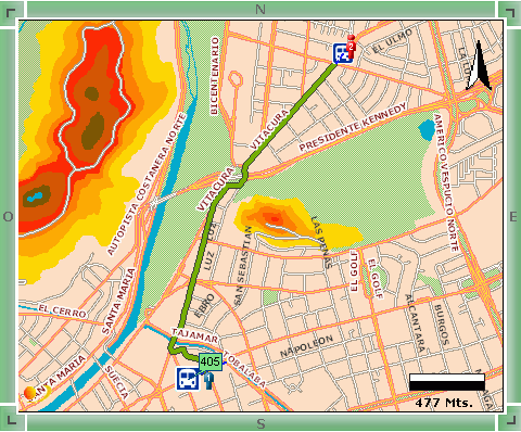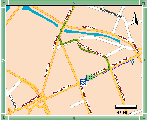 This is an example of a trip from Tobalaba station (Line 1 subway) to Alonso de Cordova with Vitacura avenue.