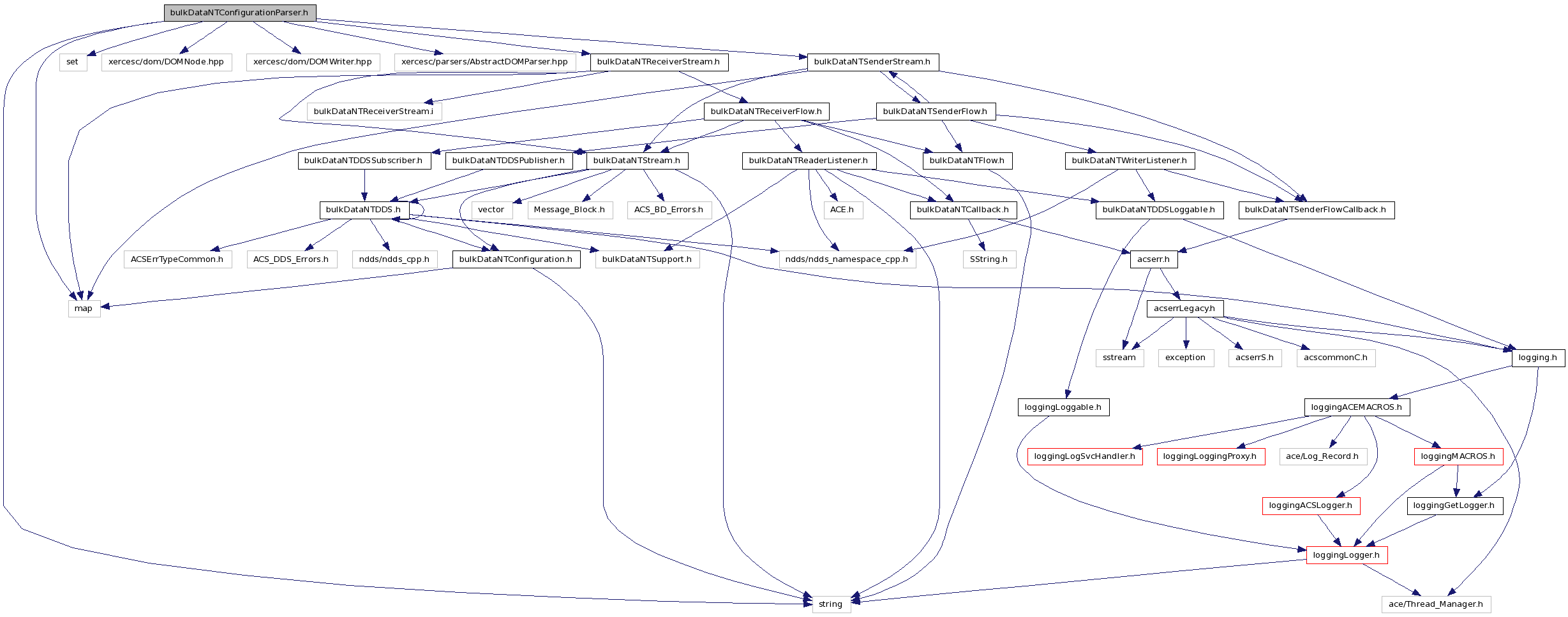 #include <map>#include <string>#include <set>#include <xercesc/dom/DOMNode.hpp>#include <xercesc/dom/DOMWriter.hpp>#include <xercesc/parsers/AbstractDOMParser.hpp>#include "bulkDataNTSenderStream.h"#include "bulkDataNTReceiverStream.h"