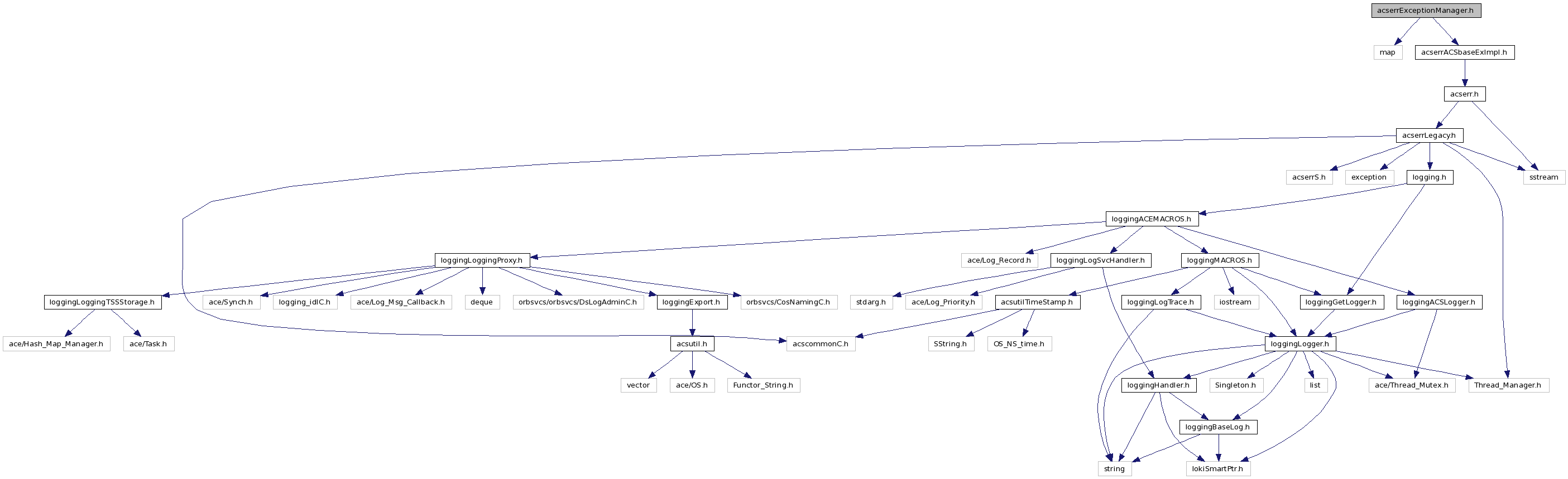 Include dependency graph for acserrExceptionManager.h: