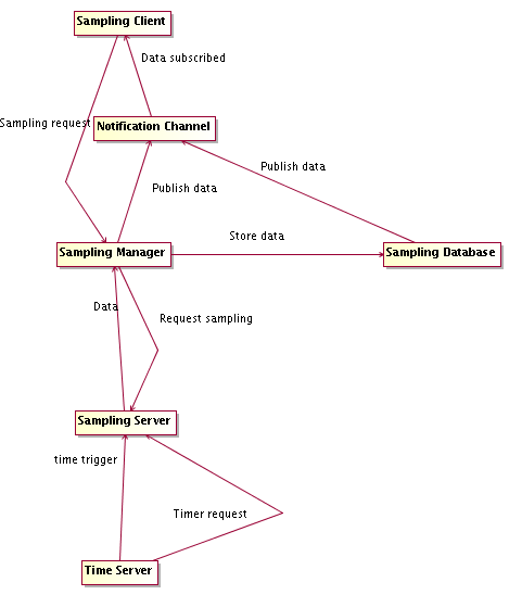 Data transport is optimized. The samples are NOT sent one by one to the central control computer responsible for storing data, but are cached on the local computer and sent in packets (for example with 1 Hz. Frequency). This is of primary importance to keep network load under control. [RD01 - 4.3.1. Sampling]