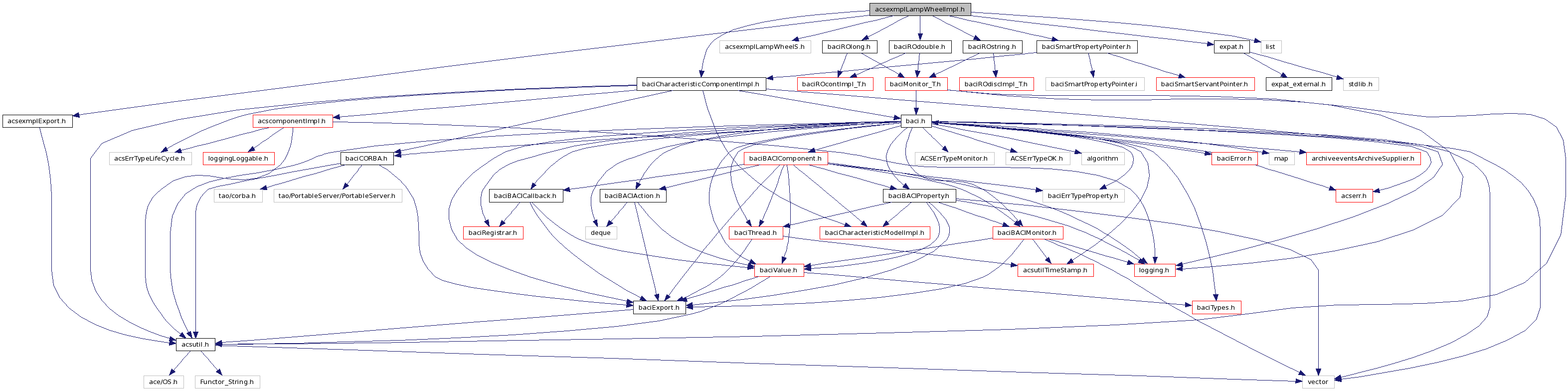 Include dependency graph for acsexmplLampWheelImpl.h: