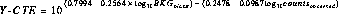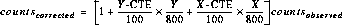 The correction depends on the average background, the average counts over the chip, and the counts in the source itself. Assuming a 2 pixel aperture, the corrected counts are given by: