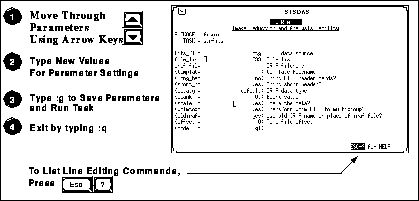 The epar command is an interactive parameter set editor. It displays all of the parameters and their current settings on the screen. You can move around the screen using the arrow keys (also called cursor keys) and type new settings for any parameters you wish to change. Figure A.6 shows a sample of the epar editor at work (invoked by typing epar strfits).