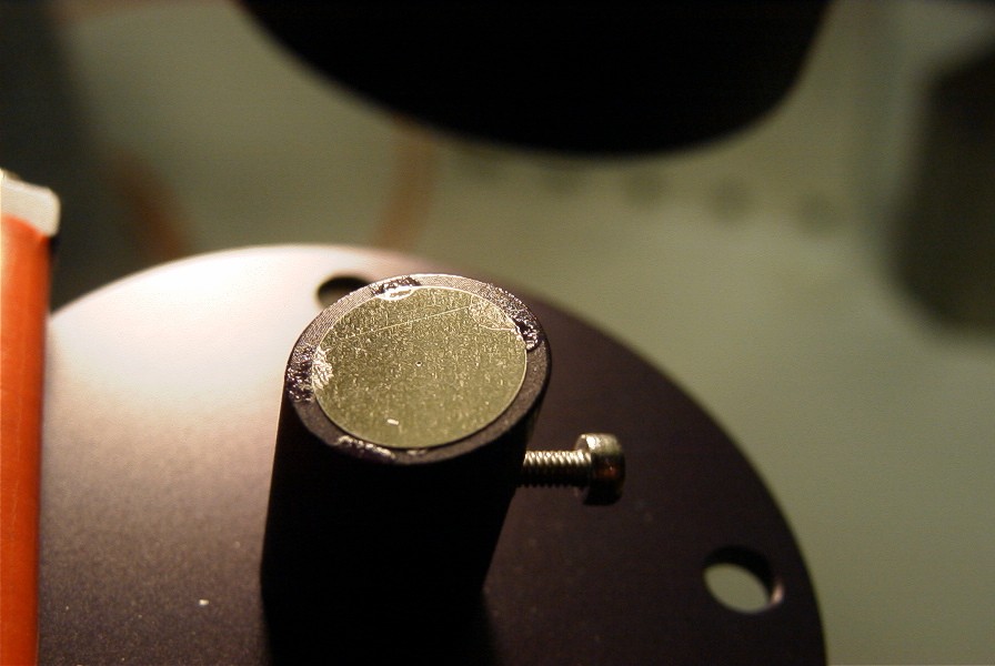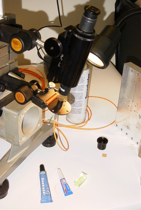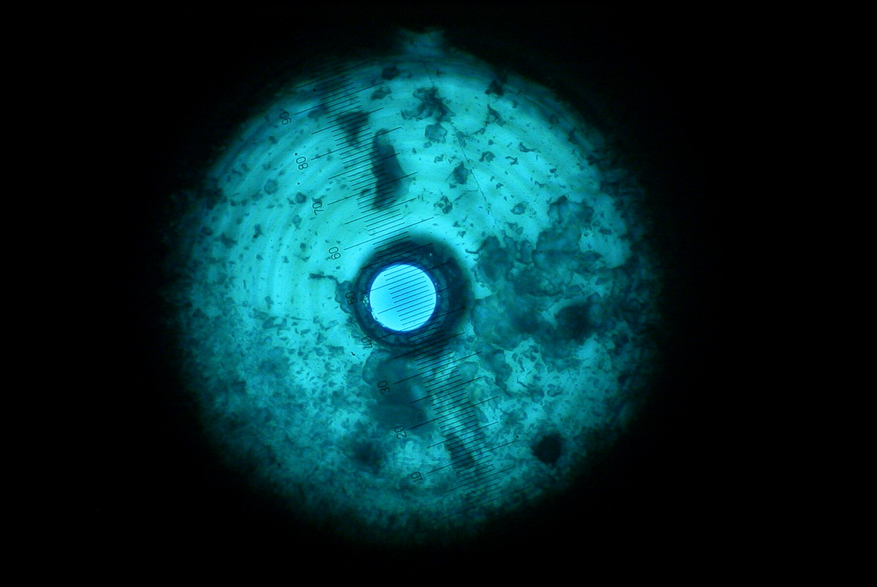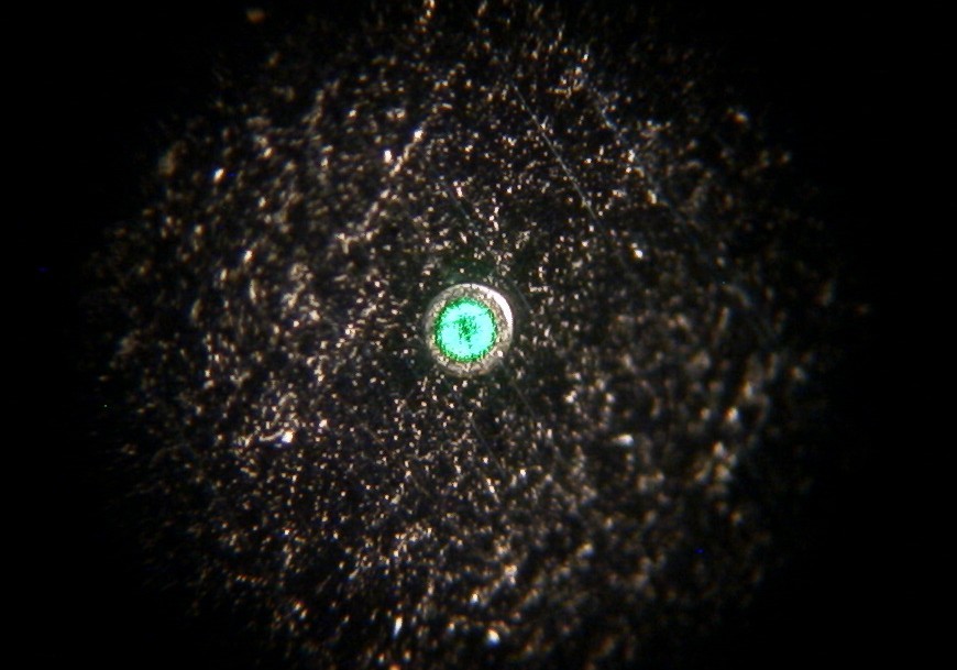 View through the mircrsocope of the ping-hole and the image of the fibre pupil