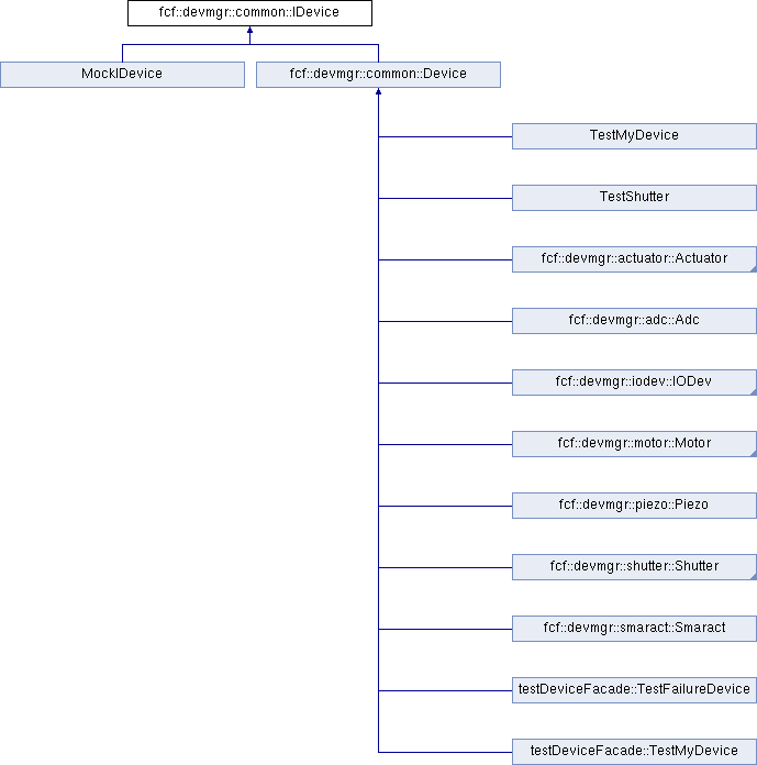 Implemented in fcf::devmgr::smaract::Smaract, fcf::devmgr::shutter::Shutter, fcf::devmgr::piezo::Piezo, fcf::devmgr::motor::Motor, fcf::devmgr::lamp::Lamp, fcf::devmgr::iodev::IODev, fcf::devmgr::drot::Drot, fcf::devmgr::adc::Adc, fcf::devmgr::actuator::Actuator, TestMyDevice, testDeviceFacade::TestFailureDevice, testDeviceFacade::TestMyDevice, TestShutter, and MockIDevice.
