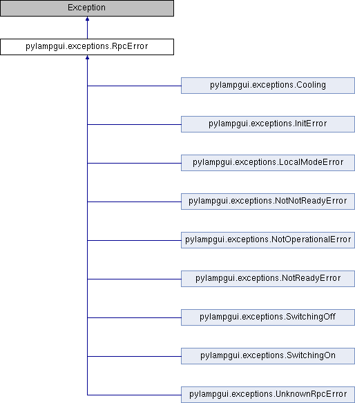 Inheritance diagram for pylampgui.exceptions.RpcError: