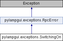 Inheritance diagram for pylampgui.exceptions.SwitchingOn: