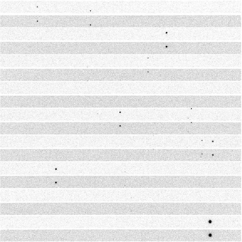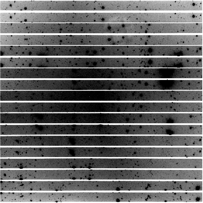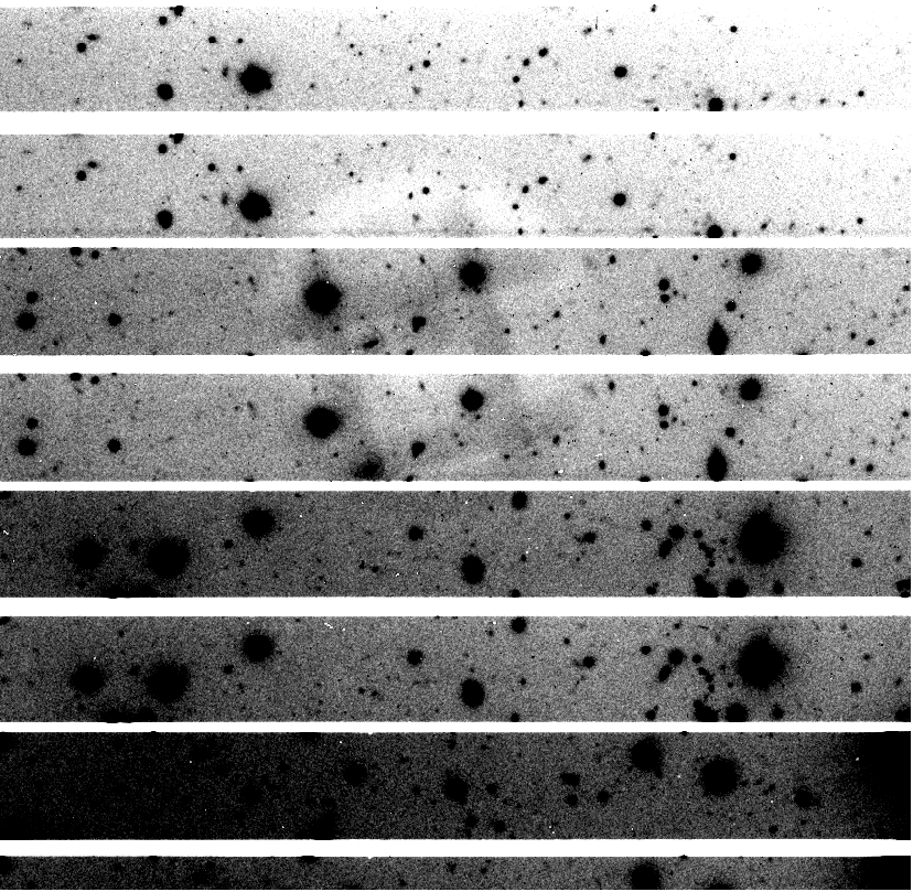 To show that the effect is real and not due to reduction artifacts, in the following picture we present the observed images (bias and flat-field corrected with sky flats) for 0 (upper left), 22.5 (upper right), 45 (lower left) and 67.5 (lower right). All images are displayed with the same intensity cuts and were divided by the same sky flat.