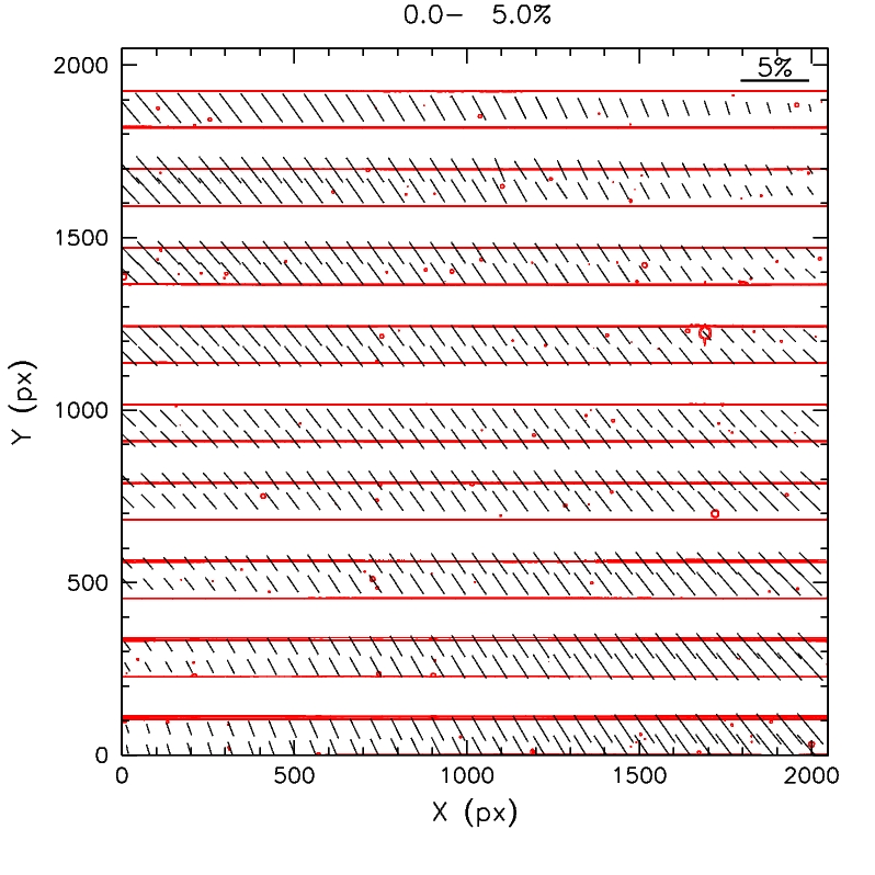 As one can see, there are clear polarization patterns. See, for example, the gradients in the upper slitlets of right images (22.5 and 67.5). Background polarization is clearly visible in the 67.5 image, where the difference between ordinary and extraordinary beam is indeed apparent.