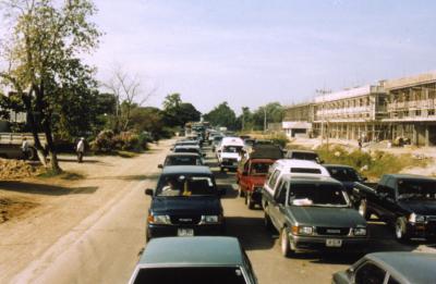 After arriving in Bangkok on the 22nd, approximately 60 other astronomers from all over the world, and of course myself, were taken by two air-conditioned coaches from Bangkok to our hotel in one of the several former capitals of Thailand, Ayuthaya. Although still some 60-km away from the site we had chosen to observe the eclipse from, this was the closest hotel that we could get rooms in, all others closer having been taken by other people intent on seeing the eclipse. Many of the roads we traveled that day were flooded and thus far better suited to the customary local form of transport at that time of the year, the boat, which no doubt would have been quicker, and would probably have kept our luggage drier!