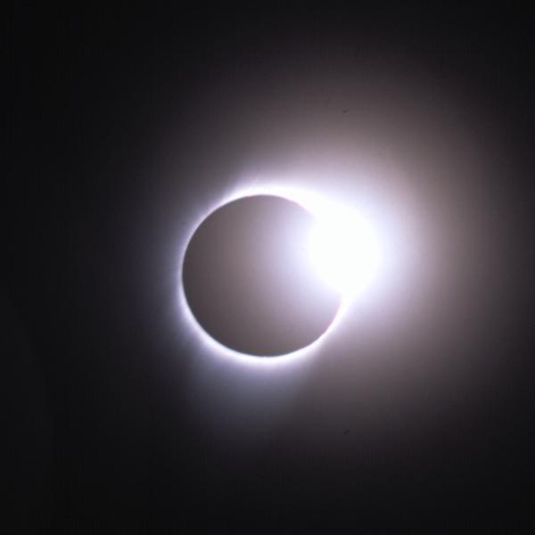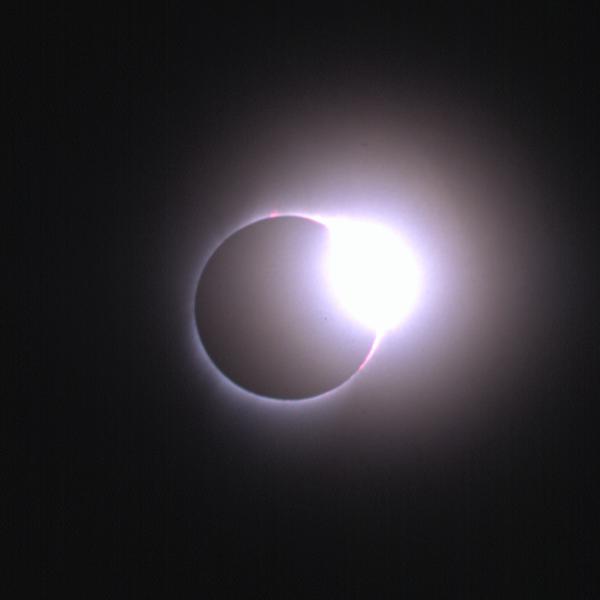 Finally, the moment of totality was upon us. A magnificent sight to see. The solar corona, the gaseous extended atmosphere of the sun usually unobservable due to the immense glare from the sun's surface, was plain to view and stretched out on both sides of the the sun. Beautiful flashes of the solar surface, seen between the valleys of the mountains on the moon's surface, produce the so-called Baileys-Beads effect, as seen in the picture, and at least one large prominence, also seen in the picture, was visible. All too soon, just 33-seconds after totality commenced, the sun began to re-emerge from behind the moon. Never the less, I don't think anyone was disappointed by the short duration, even though we had been expecting totality to last almost 2-minutes. Everyone was, I think, simply amazed by the beauty and splendour of the eclipse. Since no one in our group was a solar astronomer, this was really sightseeing for us, rather than science, so we were all able to simply watch an appreciate the eclipse without having to be too concerned with experiments or scientific observations.