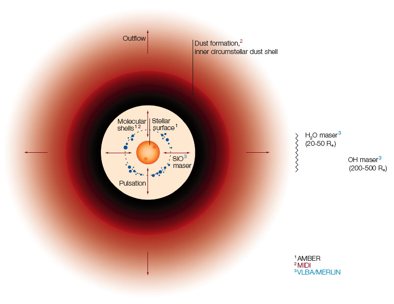 techniques/wavelength ranges (MIDI, AMBER, VLBA, MERLIN).