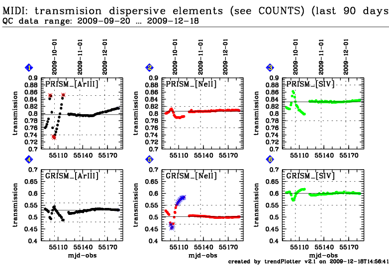 (param name): The number of counts is measured using 3 different filters (ArIII, SIV, NeII) in the OPEN position and then using the PRISM (PR.F4/5/6) and the GRISM (GR.F4/5/6). The transmission for the PRISM in ARIII is calculated with number_counts_PR_ARIII/number_counts_OPEN_ARIII