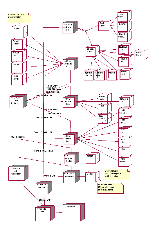 The current LAN implementation reflects the VCM layout. A detailed study of the foreseen traffic will lead to decide of the final layout. It shall aim to avoid any LAN reconfiguration on relocation. Therefore a possible solution might consists in having all AT equipment on one subnet only.
