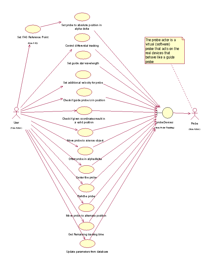 The first diagram shows the Use Case diagram of all use cases for the virtual probe.