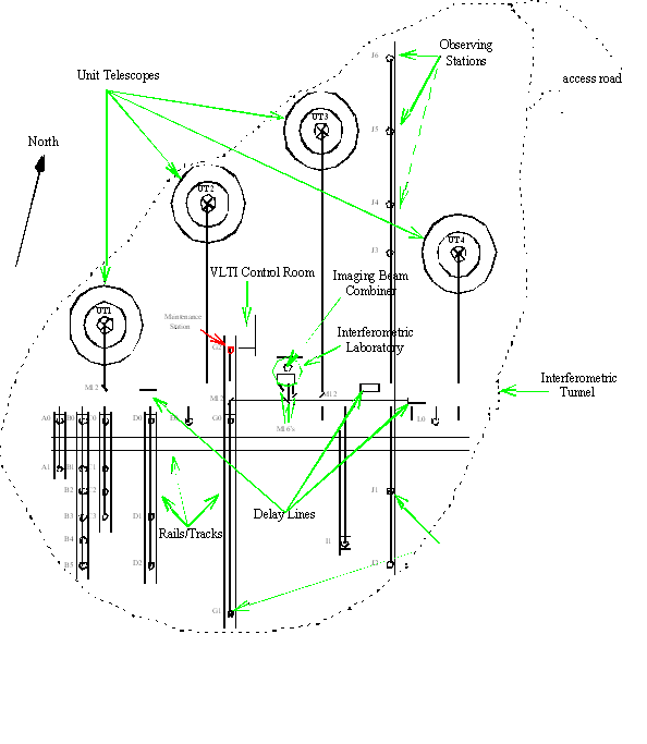 Figure 1 in this chapter shows a scheme of the VLTI site layout
