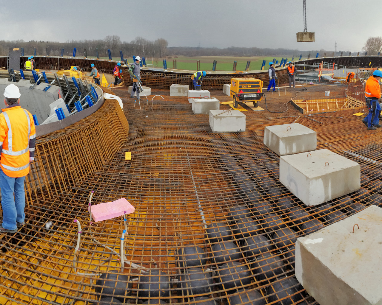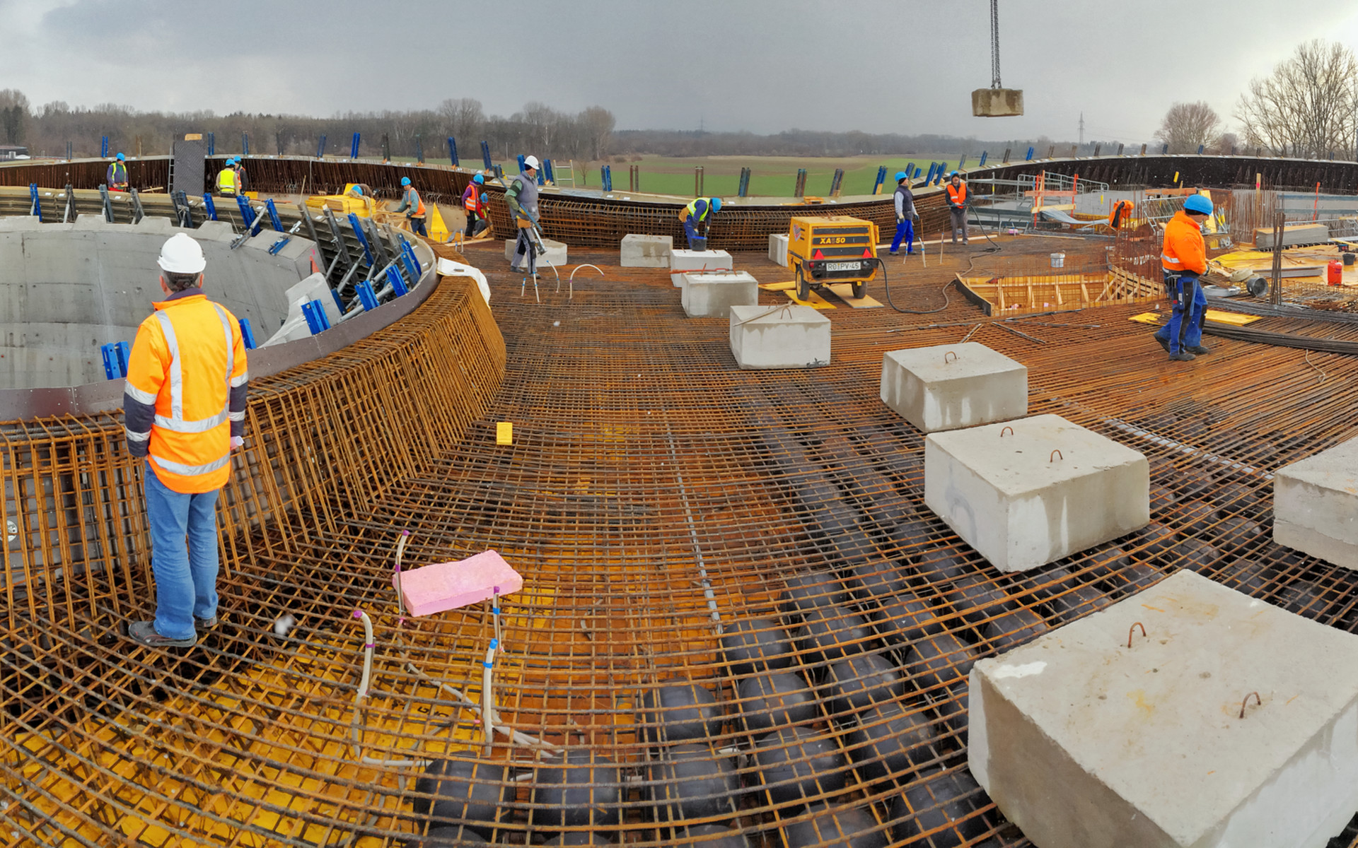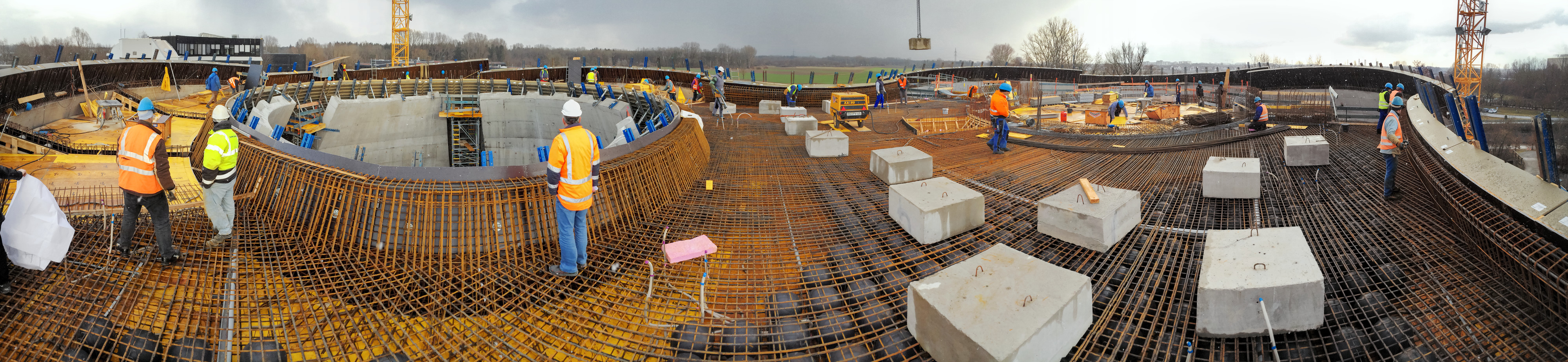 A panoramic view of the ESO Supernova Planetarium & Visitor Centre during its construction.