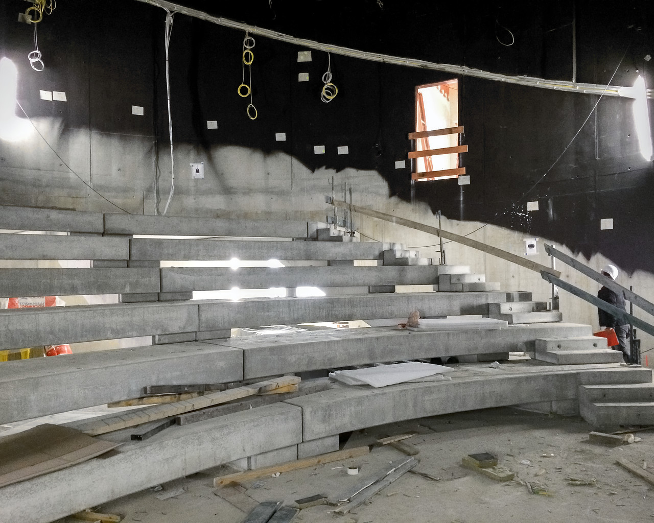 Construction of the planetarium seating in the ESO Supernova Planetarium & Visitor Centre.