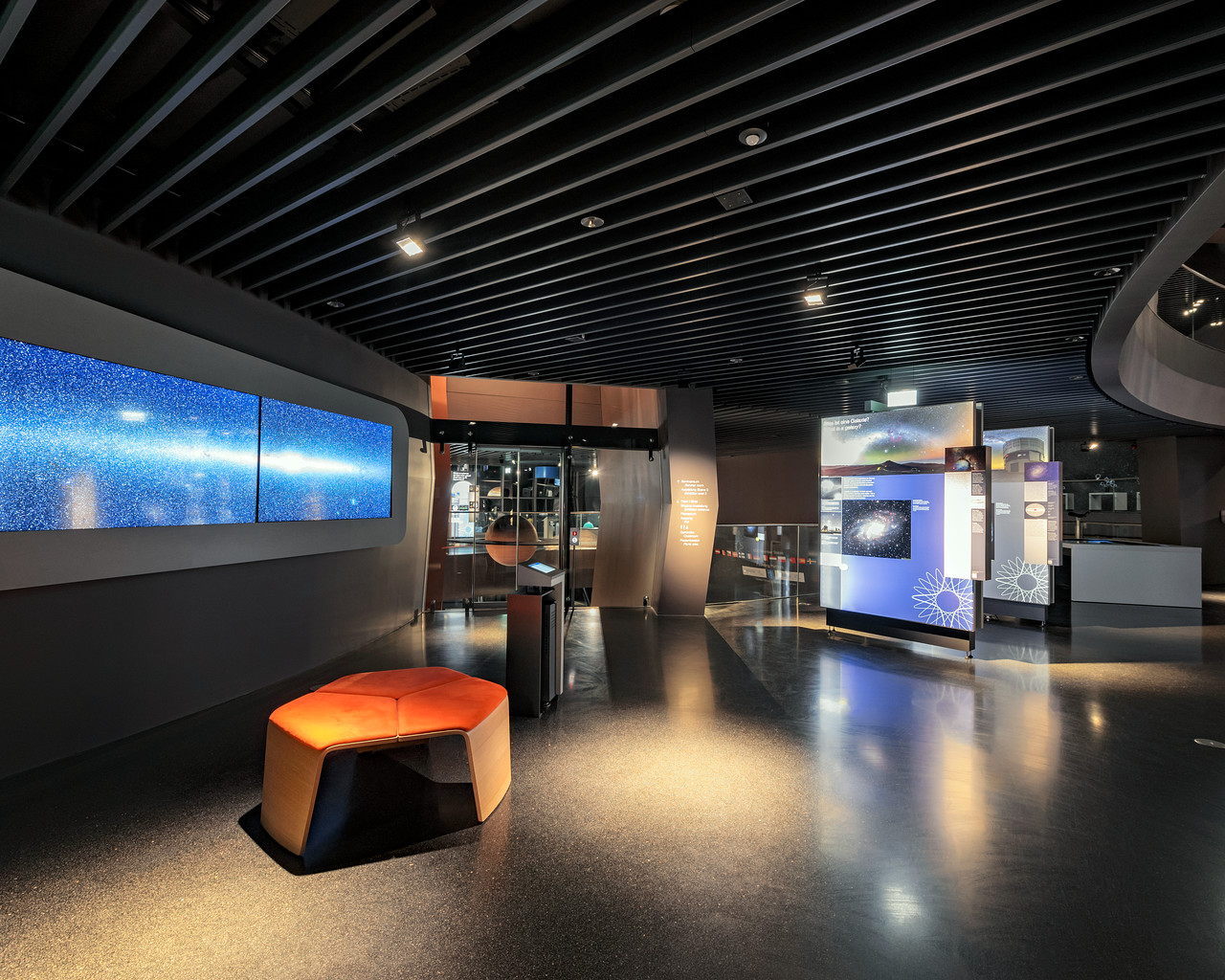 The freshly decorated interior of the ESO Supernova Planetarium & Visitor Centre.