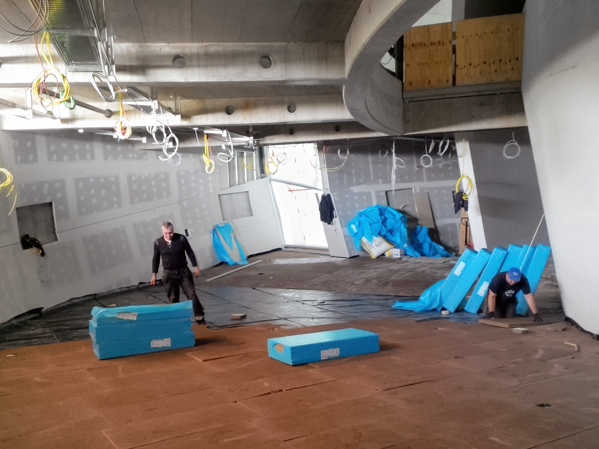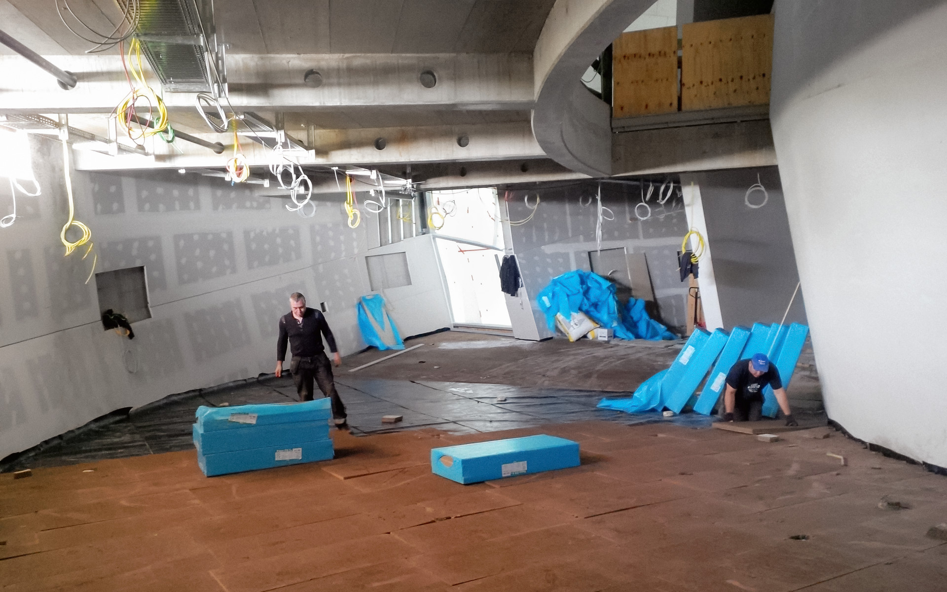 Photo taken during the construction of the ESO Supernova Planetarium & Visitor Centre showing the exhibition path.